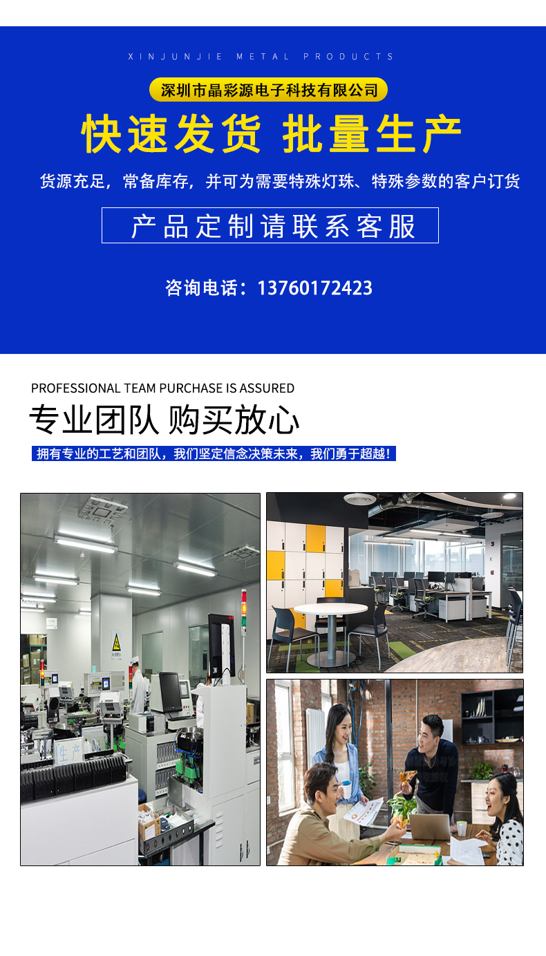 深圳市晶彩源电子科技有限公司联系人:刘总电话:13760172423邮箱:869160667@qq.com网址:www.szjcyled168.com地址:深圳市宝安区石岩镇北环西山路4号润腾工业园A2栋4楼